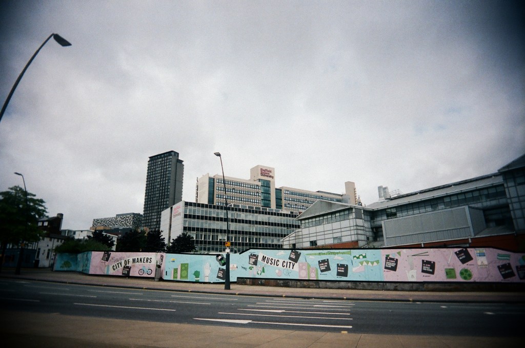 Cheers of nostalgic joy erupt from my fellow passengers. I stay awkwardly quiet, being born three years after it closed its doors. We travel down the remainder of West Street, past the pubs and clubs of early Pulp gigs, eighties venues where zines were traded and demo tapes foisted. We cross the stretch of road that was once home to another lost landmark: The Hole in the Road. Banks’ verdict: “acoustics, brilliant; odour, not so brilliant.”