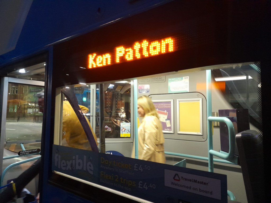 On the way back, there’s a music quiz featuring demos recorded at Studio Electrophonique. It’s mostly spacey synthesisers and arty spoken word – all the DIY ethos of the nascent punk scene, none of the three chord aesthetic. I have a competitive streak when it comes to ‘guess the intro’ quiz rounds, but feel like I have well and truly met my match when faced with fifteen pieces of Sheffield-based avant-garde electronica from the late seventies and early eighties. It’s a little niche. We hear the likes of Bangkok Shock, Grasping The Pineappleness, and The Electric Armpits – truly a golden era of band names. There is an Electric Armpit on the bus tonight, who has something of an unfair advantage, and probably outstrips everyone else’s feeble scores just by guessing his own songs.