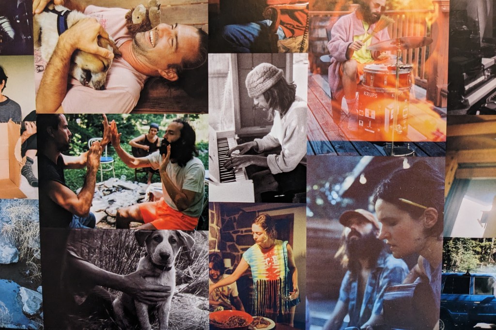 These photos are taken from the album art of the vinyl release. The band recorded much of the album in a secluded cabin in the forests of upstate New York, surrounded by birdsong and trickling streams. The album art is a collage of love and laughter. There are shared meals with close friends, fireside jams, recording sessions with Lenker’s dog scampering around the studio. Life stripped back to essentials, to things that matter. In many ways these photos speak to the aims of the hospice movement. Food, company, peaceful surrounds – concerns that become central to those faced with dwindling time.